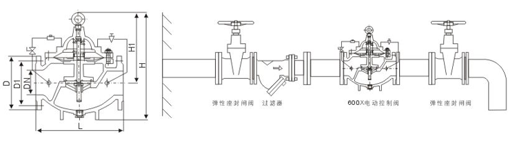 600X電動控制閥由主閥、電磁導閥、針閥、球閥、微形過濾器和壓力表組成水力控制接管系統(tǒng)。通過電磁導閥可以實現(xiàn)對閥門開啟和關閉的遙控。加裝附加裝置后,可控制開啟和關閉的速度。電控水力控制閥利用導閥控制閥門的開啟和關閉,節(jié)省能源?纱嫫渌y門大型電動裝置。電控水力控制閥產(chǎn)品廣泛用于高層建筑、生活區(qū)等供水管網(wǎng)系統(tǒng)及城市供水工程。