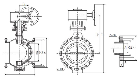 Q94F/Y/H電動(dòng)偏心半球閥主要外形和連接尺寸: