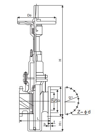 國(guó)標(biāo)無(wú)導(dǎo)流孔平板閘閥主要外形尺寸