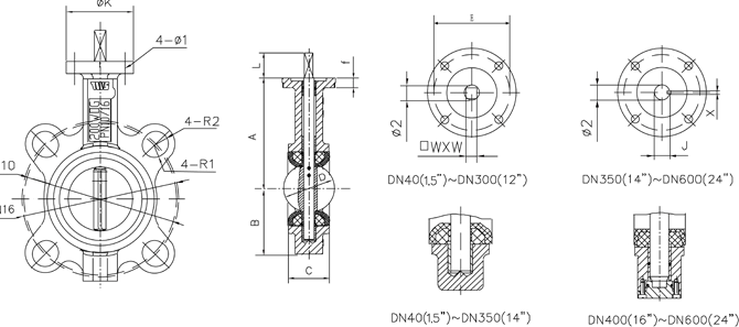 | 6 | 蝶板 | WCB | ZG1Cr18Ni12Mo2Ti | ZG1Cr18Ni12Mo2Ti | 16 | 填料 | PTFE.柔性石墨 | ||